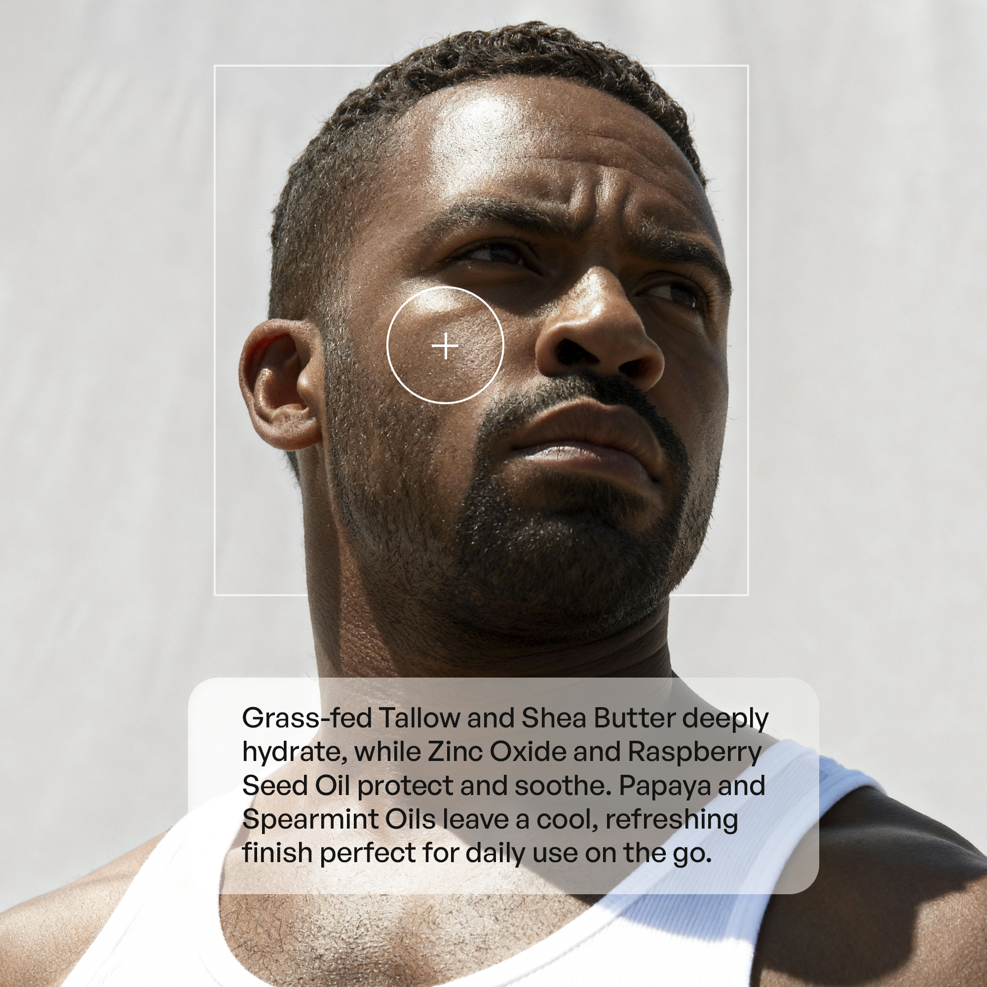 A nourishing balm stick designed to comfort and hydrate skin before and after sun exposure. Crafted with organic grass‑fed beef tallow, antioxidant‑rich raspberry seed oil, non‑nano zinc oxide for a calming barrier, soothing papaya seed oil, and refreshing spearmint oil, this stick moisturizes and comforts your skin. Ideal for all skin types, it’s easy to apply and free of synthetic additives.